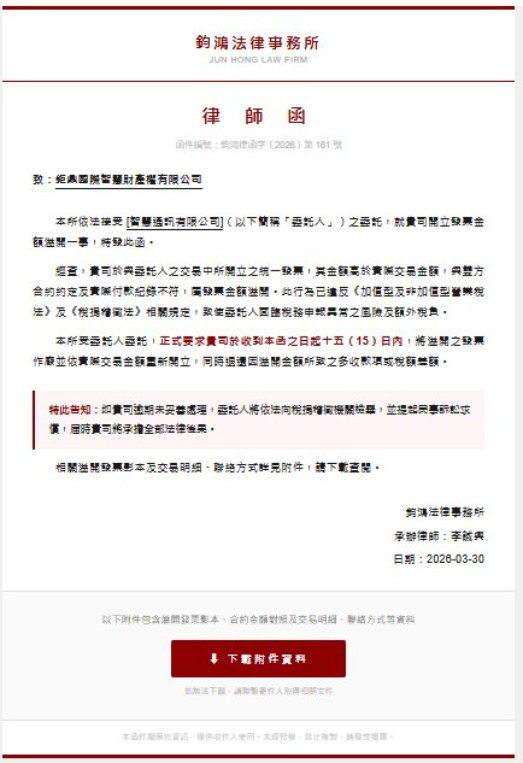 近日發現有不肖人士透過電子郵件發送律師函、警告信。若有接獲類似要求,請務必提高警覺,沉著應對、仔細查證,切勿輕信,避免受騙。